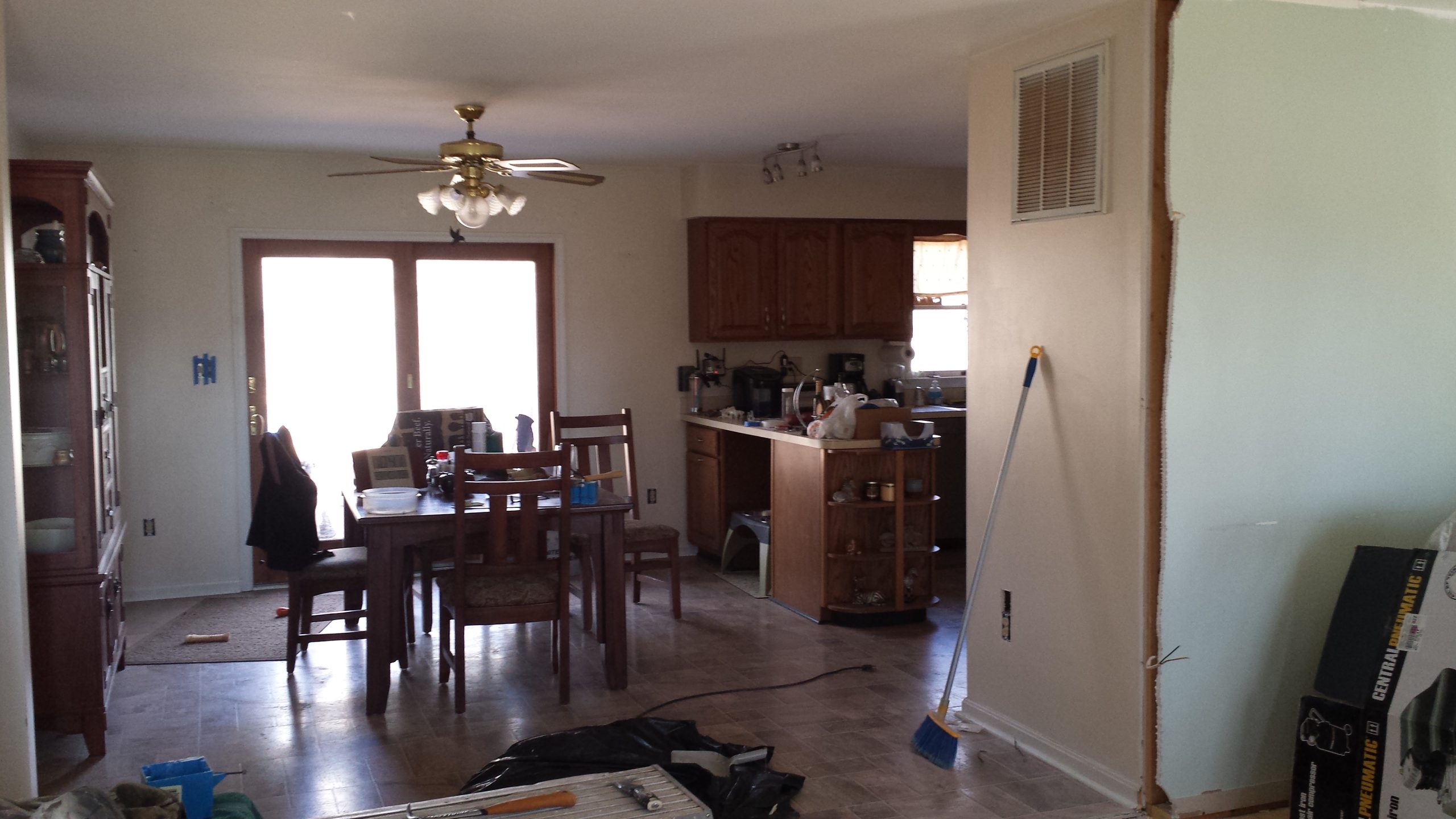 In the spring we returned to our mission of truly making this house our home, and decided to spruce up the walls in several rooms (which had not been painted since purchasing the house), as well as do ‘something’ about the wall between the dining room and living room. After consulting with the contractors, we decided to just do away the wall entirely. The open floor plan has really changed the character of the house and allows for much better light and air flow. And somehow in the construction fervor, we gave the hallway bathroom a makeover as well.