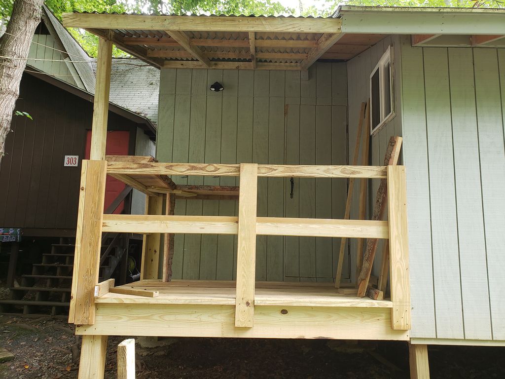 This year our ‘home’ improvement project was focused on the Tessem Stoneware booth at the Maryland Renaissance Faire. We’d been plotting to add a back deck to use for cooking and we made it happen over the summer. Thankfully we had a wonderful group of friends with mad carpentry skills turn out to help us with the construction, and it turned out beautifully. The new deck has plenty of shade from the afternoon sun, and offers a lot more room to prepare meals.