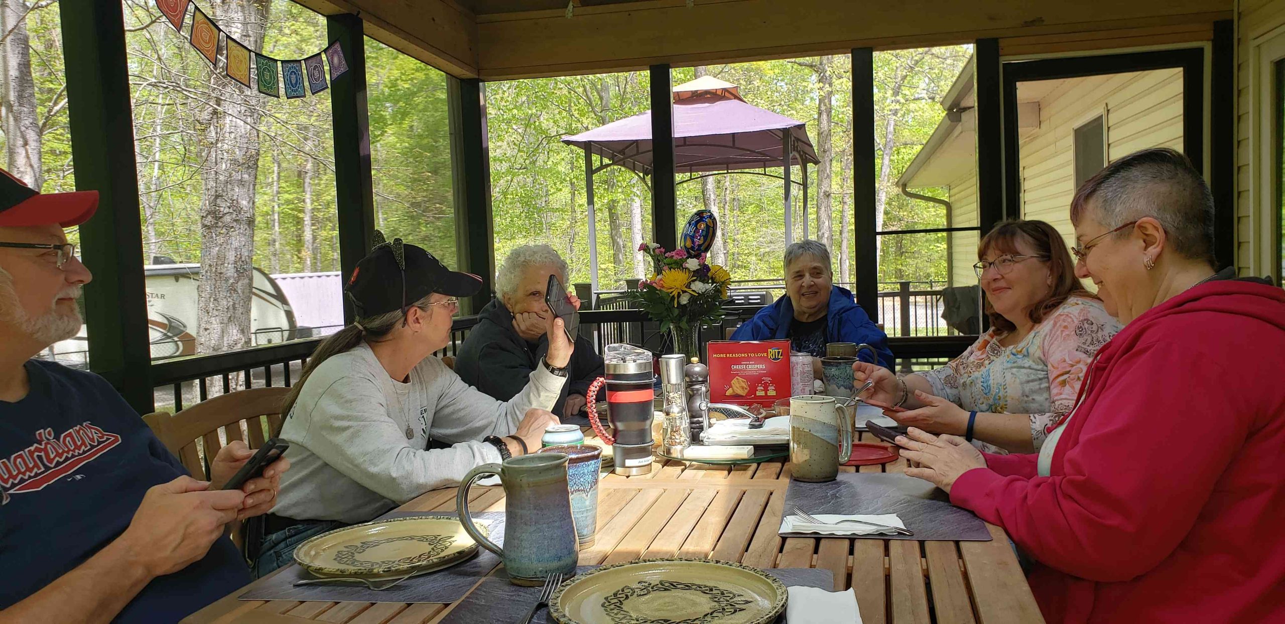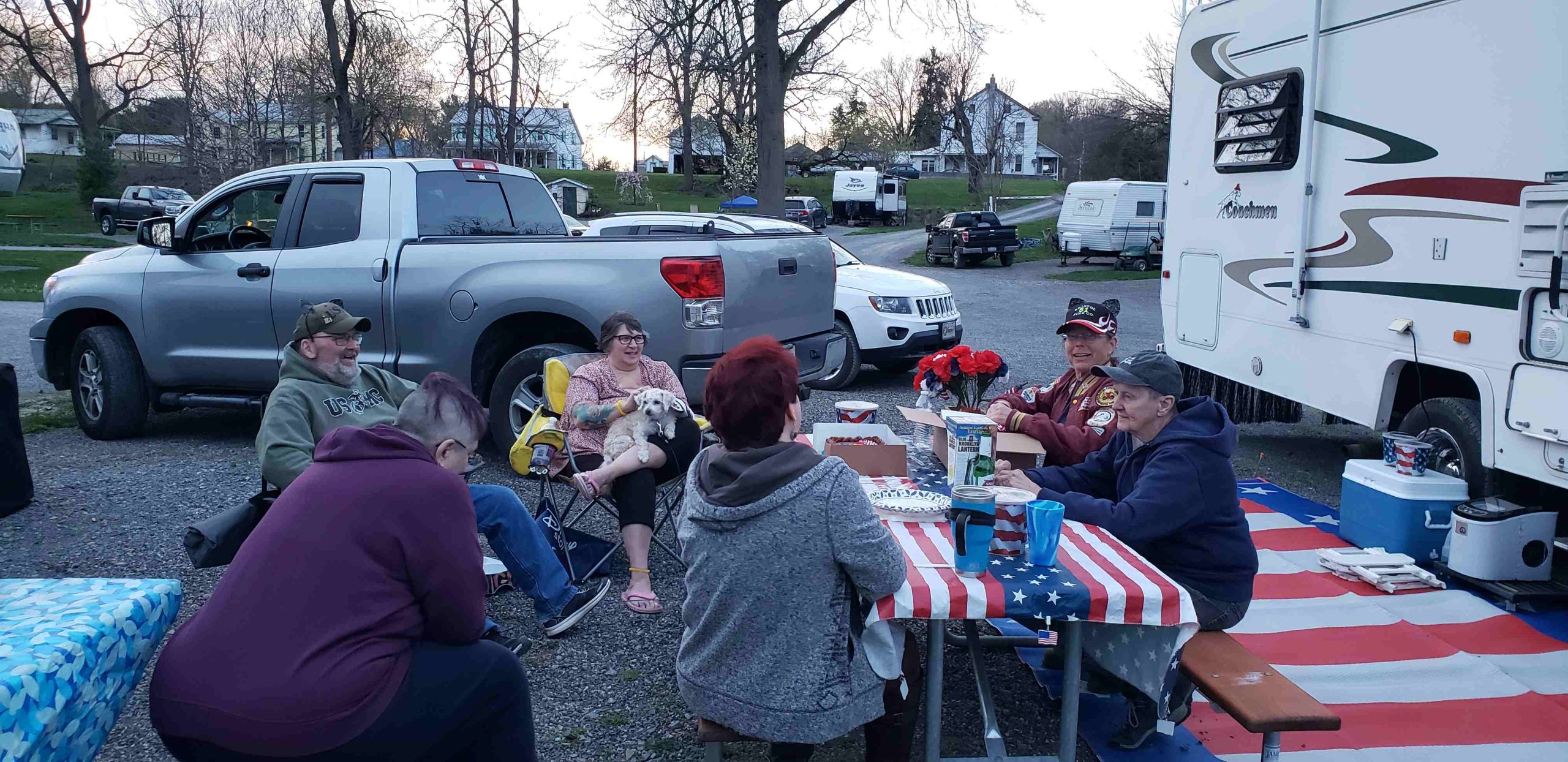 In April, we went on a camping trip with several awesome friends at a very nice, family-owned campground in Pennsylvania. Our spot was right along the river and the view was lovely. Mother Nature decided that we needed to have all of the seasons in our one-week visit – snow, rain, fog – you name it. We also got hit with a stomach bug that was making the rounds and Anna, ever the over-achiever, got to meet the nice folks at the local ER briefly.